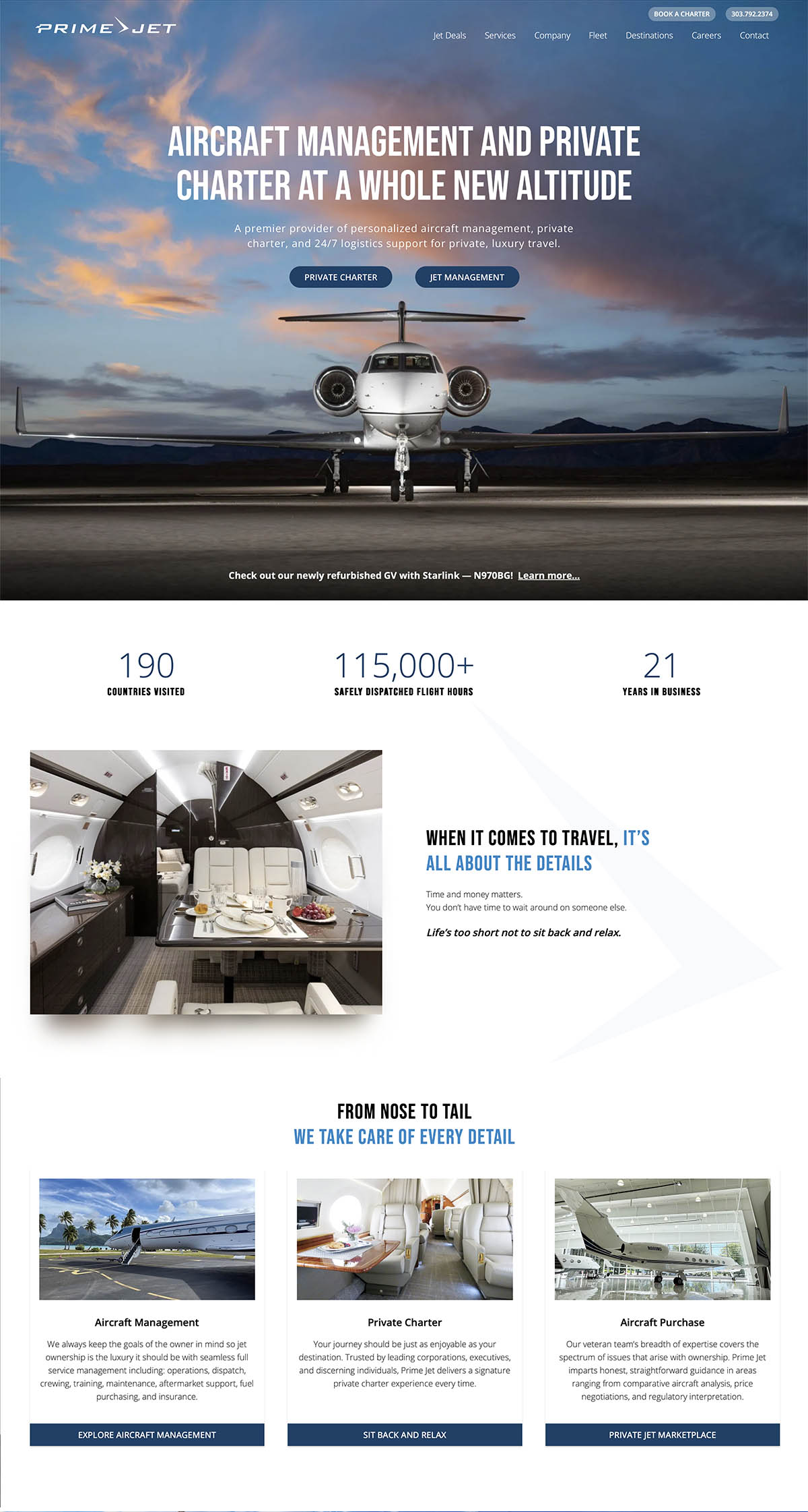 Navigation was streamlined to allow users to easily access key information and services. The booking process was simplified, reducing the number of steps required to charter a jet. Interactive elements, such as a dynamic fleet showcase, were added to engage users and provide a more informative experience.