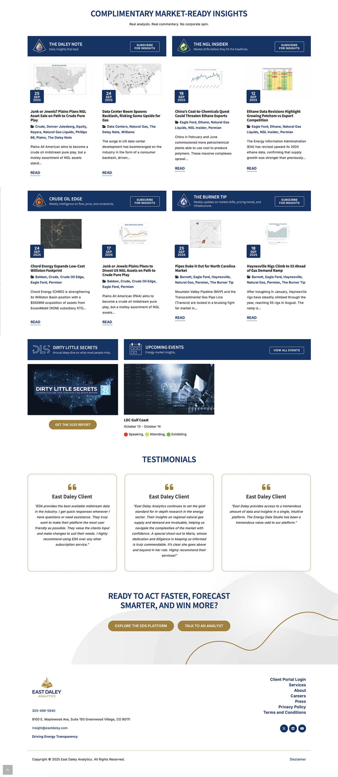 The redesign has significantly enhanced East Daley’s online presence, leading to increased brand recognition and client inquiries. The improved user experience has contributed to higher client retention and acquisition rates, solidifying East Daley’s position as a leader in energy market analysis.